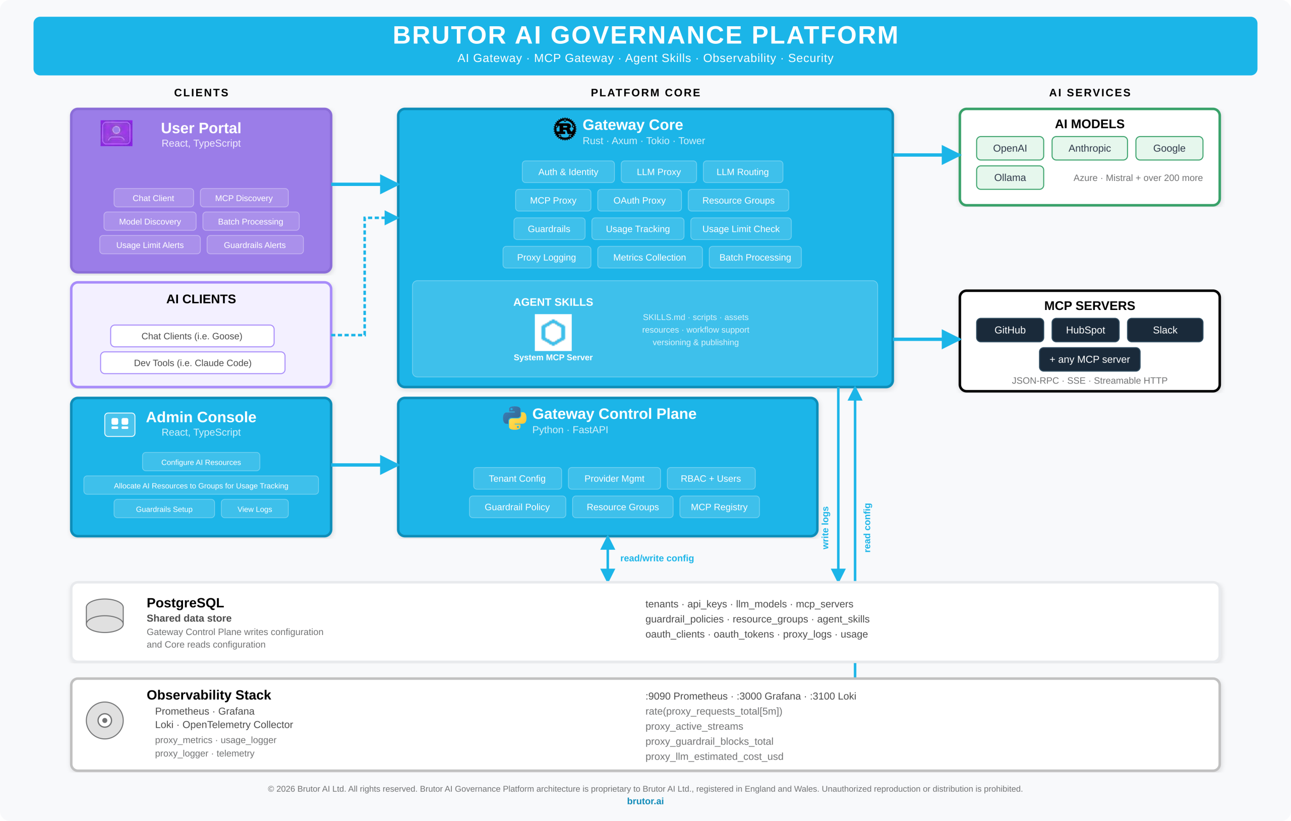 The Brutor AI Proxy is built in Rust for maximum throughput and minimum latency overhead. Governance shouldn’t slow your AI down — and with Brutor, it doesn’t.
